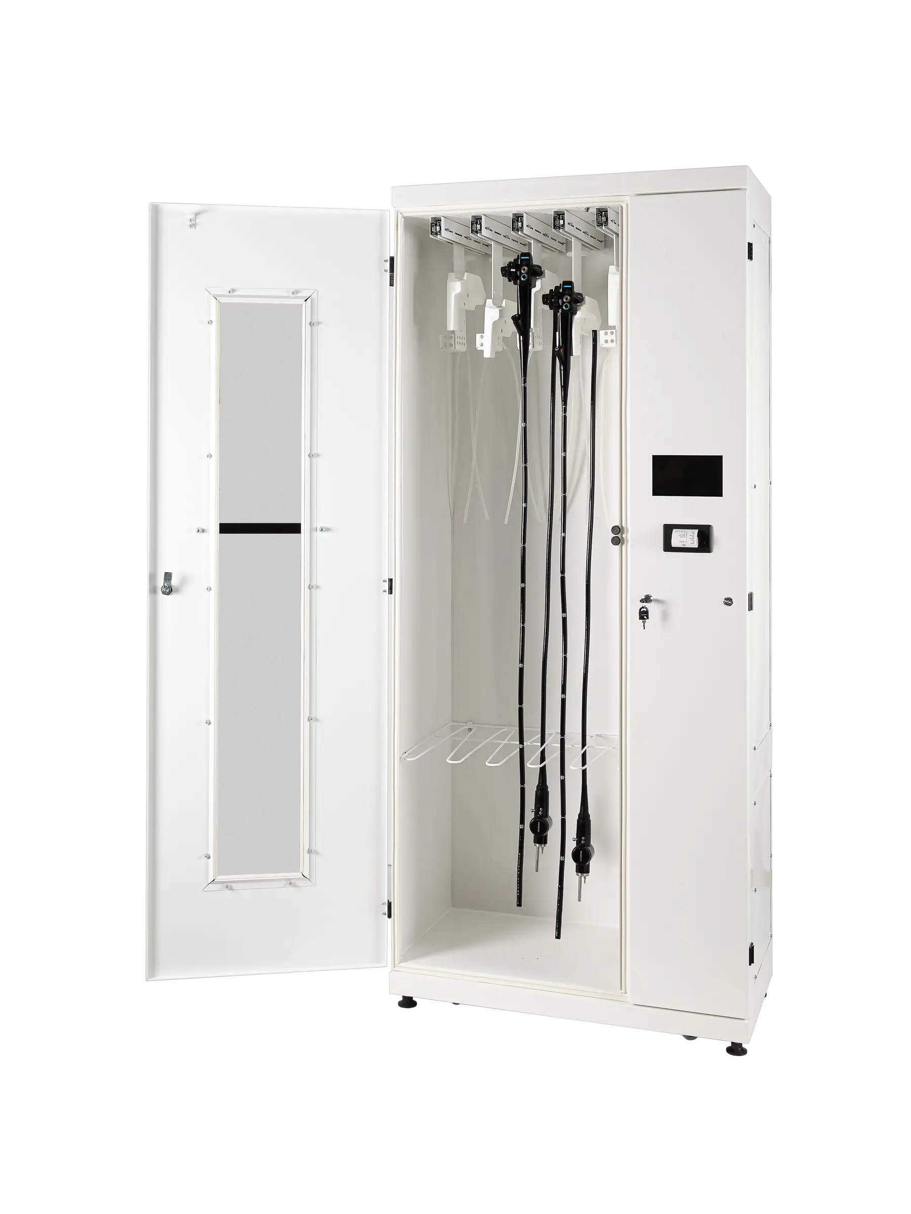 Следует учитывать, что хранение эндоскопов под прямым воздействием ультрафиолетового излучения недопустимо (согласно пункту 8.1.12). Именно поэтому многие производители шкафов отказались от установки открытых облучателей в своих продуктах.