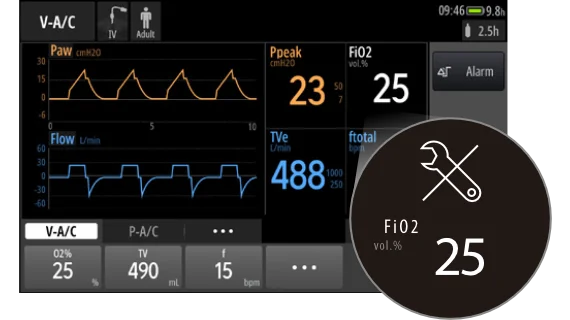 - Автоматически синхронизирует настройки аппарата искусственной вентиляции легких и прикроватного аппарата искусственной вентиляции легких, исключая ручную настройку