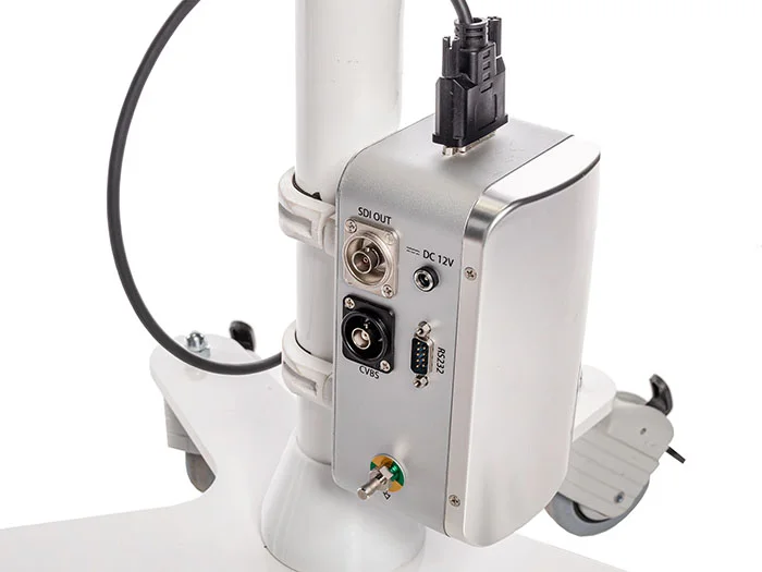 Эргономичный проводной пульт, подключаемый непосредственно к оптической головке, дает быстрый доступ к основным функциям: регулировке увеличения, сдвигу точки фокуса, управлению цветовыми фильтрами и моментальной фотофиксации. Для полного соблюдения стерильности и удобства опционально доступен ножной переключатель. Он позволяет освободить руки врача для проведения манипуляций.
