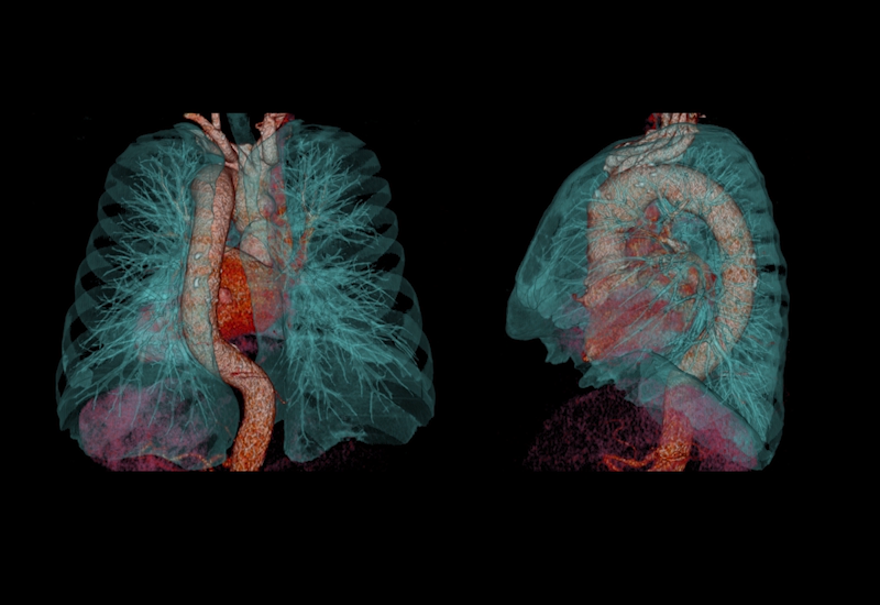 Йодное картирование позволяет без проблем идентифицировать зоны недостаточного наполнения легких. Усовершенствованный алгоритм регистрации анатомических образований, настроенный на визуализацию паренхимы легкого.