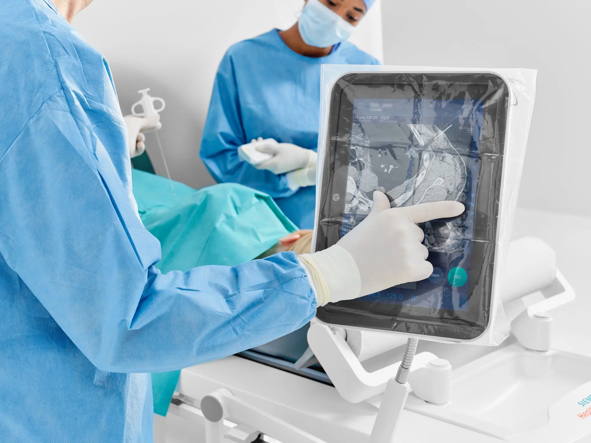 Guide&GO – инновационное решение на основе планшета, которое предназначено для проведения интервенционных процедур под контролем КТ. Оператор может выполнять процедуру с помощью планшета и пульта дистанционного управления, а для работы с изображениями использовать удобные функции сенсорного экрана, которые знакомы любому пользователю смартфона.