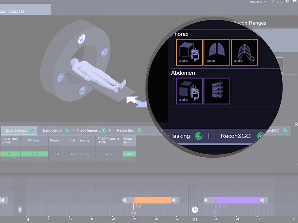 • Интеллектуальный алгоритм, который оповещает рентгенолаборанта о проблемах с разметкой диапазона сканирования или с планированием протокола контрастирования в случае их возникновения