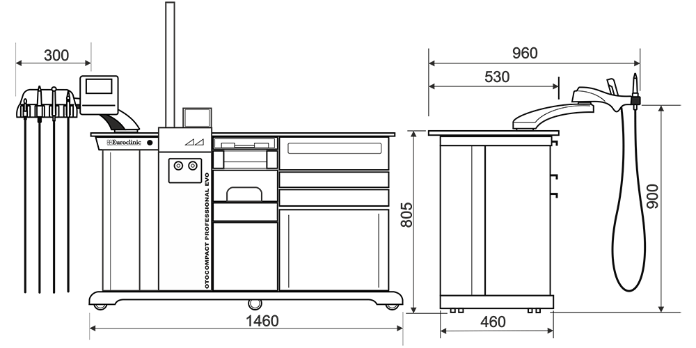OTOCOMPACT PROFESSIONAL EVO – ЛОР-комбайн премиум класса в линейке моделей Euroclinic. Этот уникальный ЛОР-комбайн включает в себя весь перечень необходимых для диагностики и лечения инструментов, а также видеосистему с беспроводной камерой и микроскоп.