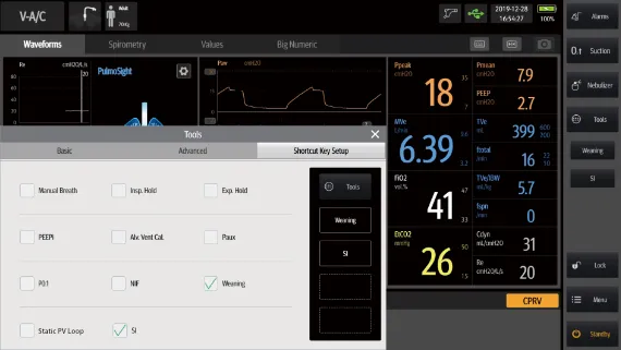 Аппарат ИВЛ оснащен широким экраном 1080P с высокой четкостью, интуитивно понятным и настраиваемым интерфейсом пользователя и мощными дополнительными инструментами и модулями.