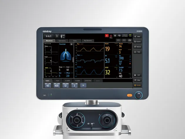Mindray SV800 – аппарат искусственной вентиляции лёгких экспертного класса, со встроенной турбиной. Подходит для проведения продлённой вентиляции у взрослых, детей и новорождённых весом от 500 гр, с реализацией основных и интеллектуальных режимов вентиляции лёгких.