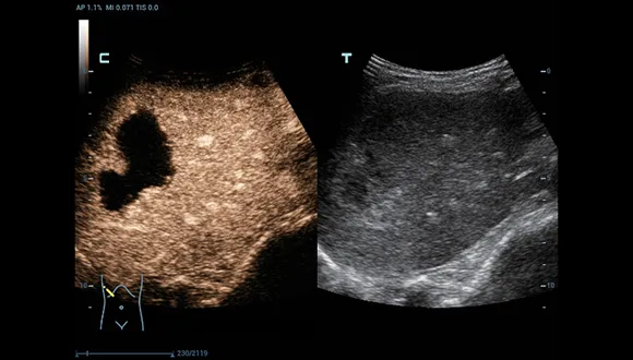 UWN+ (Ультраширокополосная нелинейная визуализация) CEUS (Контраст-усиленная визуализация) позволяет обнаруживать и использовать как 2ю гармонику, так и нелинейный фундаментальный сигнал, генерируя изображение со значительным усилением сигнала, что повышает чувствительность даже к второстепенным сигналам и увеличивает продолжительность циркуляции контраста за счет более низкого MI.
