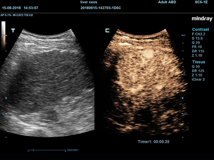 UWN + CEUS. Сверхширокополосный нелинейный CEUS Ультраширокополосный нелинейный ультразвуковой сканер (UWN+) с контрастным усилением (CEUS) второго поколения от Mindray использует как гармонические, так и основные сигналы для улучшения контрастности и временного разрешения во время исследований CEUS. Технология X-insight, используемая в DC-90, обеспечивает более длительную перфузию тканей.